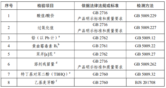 食用植物油抽檢項目: