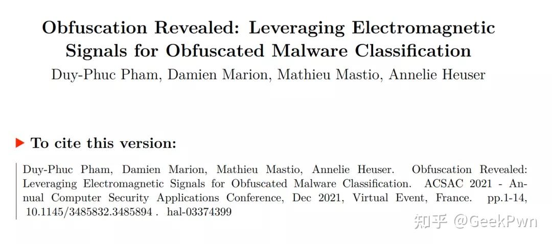 僅觀察、剖析目的設(shè)備的電磁輻射就能獲取設(shè)備的少量信息并應(yīng)用神經(jīng)網(wǎng)絡(luò)模型停止剖析。我們不只可以檢測到目的設(shè)備(運(yùn)轉(zhuǎn) Linux 操作系統(tǒng)的 Raspberry Pi )所感染的惡意軟件,還可以確定惡意軟件的類型,測試準(zhǔn)確率為 99.89%。同時(shí)也證明了代碼轉(zhuǎn)換/混雜(包括拔出渣滓代碼、打混雜包和虛擬化混雜等)不會(huì)影響這種檢測和分類方法。